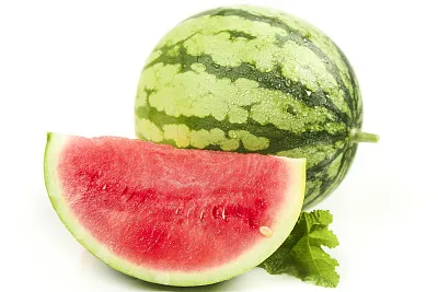 西瓜(Citrullus lanatus),是葫芦科西瓜属一年生蔓生藤本植物 ,形态近似于球形或椭圆形,颜色有深绿、浅绿或带有黑绿条带或斑纹;瓜籽为黑色,呈椭圆形,头尖;茎枝粗壮,有淡黄褐色的柔毛;叶片如纸,呈三角状卵形,边缘呈波状。花果期5—6月。因9世纪自西域传入中国,故名西瓜。